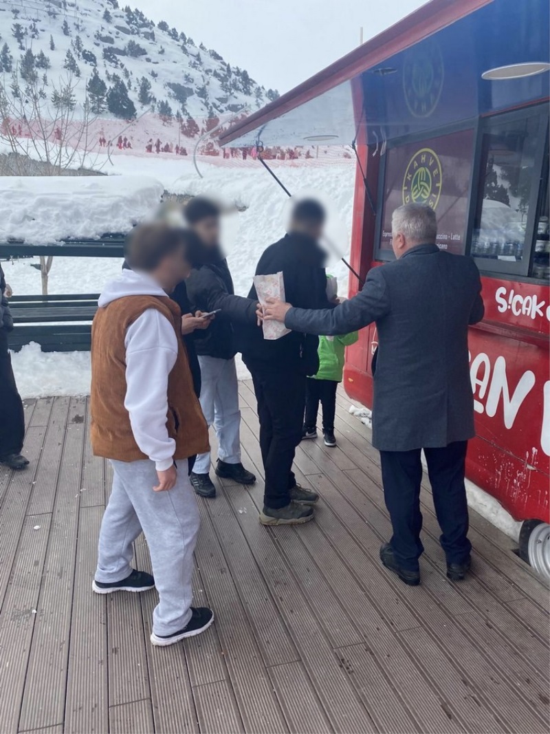 Gün boyu süren kayak heyecanının ardından verilen yemek molasında yetkililerle sohbet eden gençler, moral depoladı. Birçoğu hayatında ilk kez kayak yapma fırsatı bulan yükümlüler, kendilerine sunulan bu imkândan dolayı teşekkür etti.