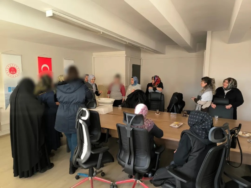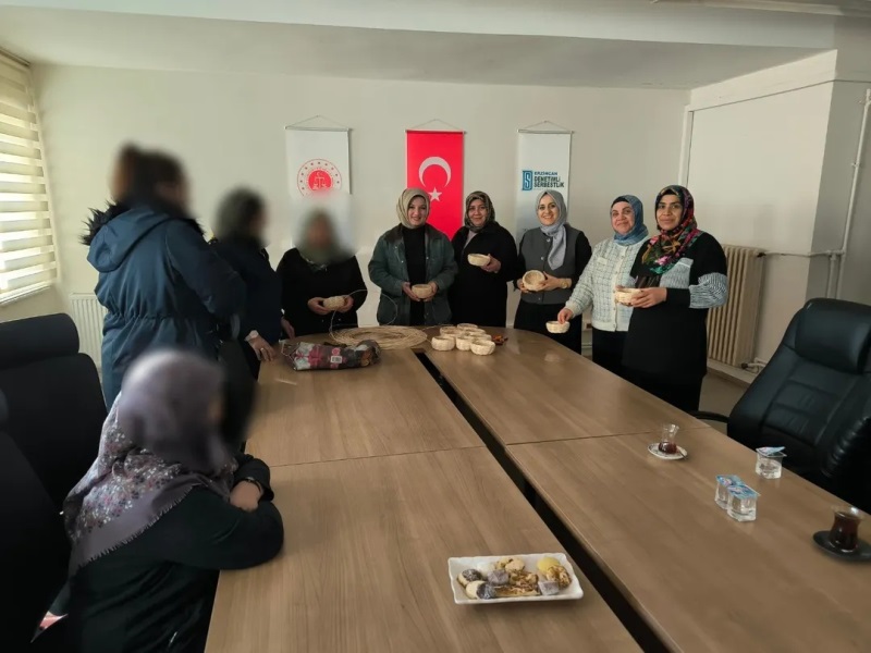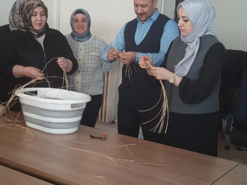 Erzincan Denetimli Serbestlik Müdürlüğü eğitim salonunda gerçekleştirilen atölye çalışmasında, yükümlüler usta öğreticiler eşliğinde söğüt dalları ve hasır iplerle buluştu.
